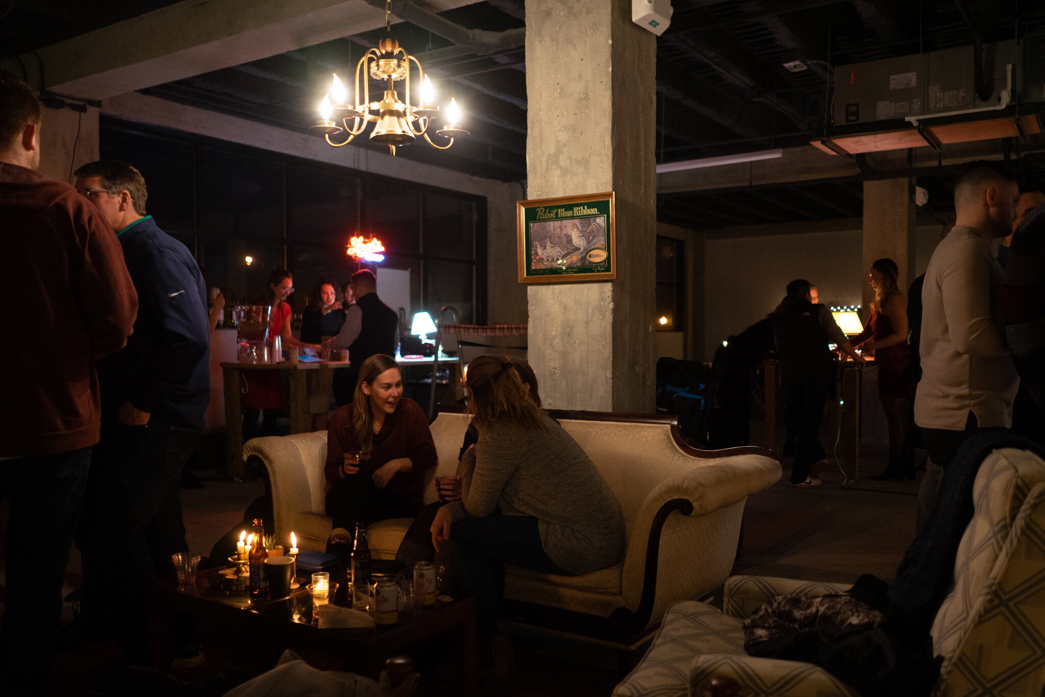 We gathered inside an empty space slated to be a restaurant on the first floor of The Hibberd, a historic printing plant finding new life as a mixed use apartment and retail space in downtown South Bend. The empty space had been lightly transformed into a cozy environment fit for a refined holiday bar.