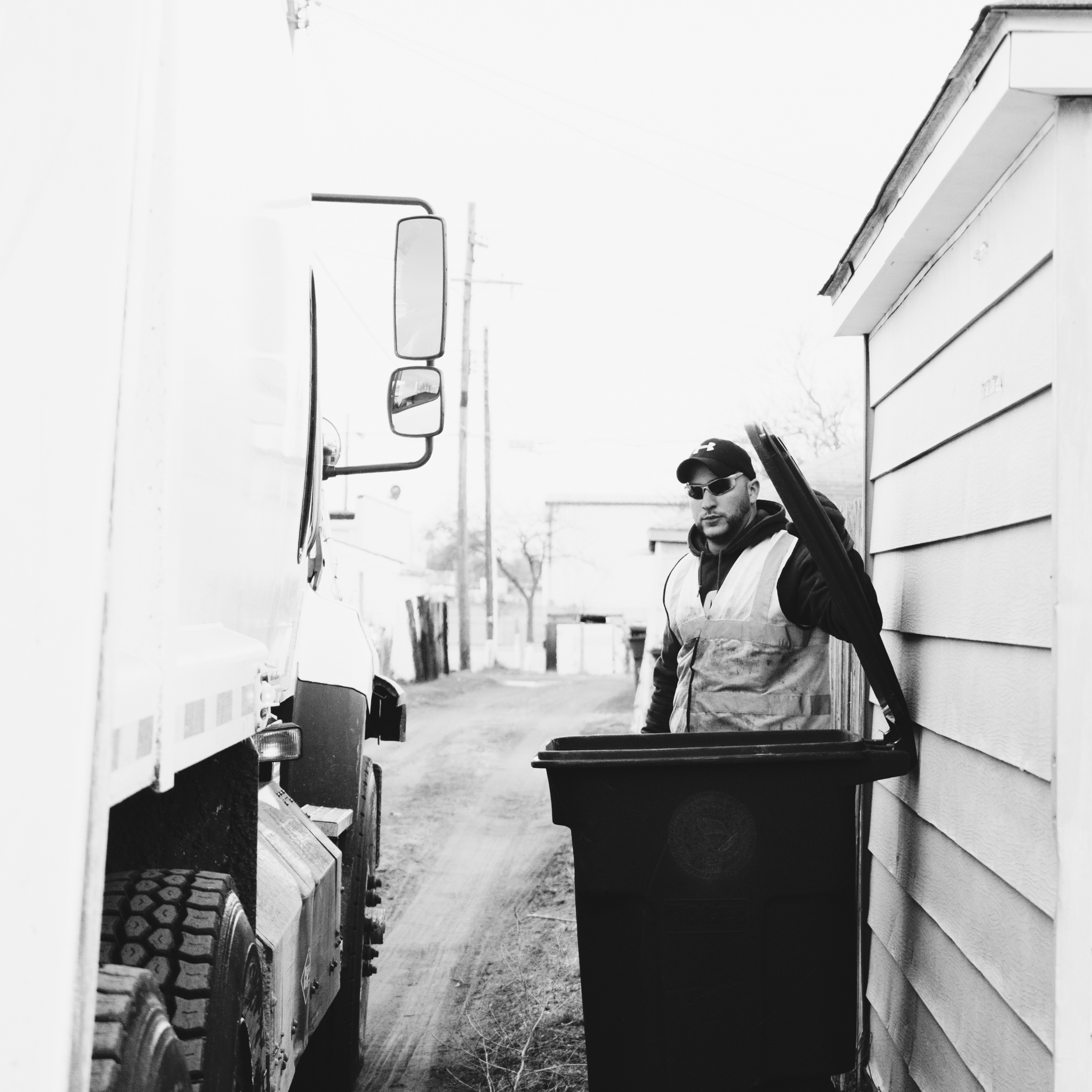 Last week I was offered the opportunity to follow a trash crew through a few alleys on the West Side. The crew, consisting of Terrance, Frank and Dave, paused for a thirty second introduction and quickly returned to work. For the next 20 minutes I ran after the truck capturing still and moving moments. What I witnessed is recorded below.