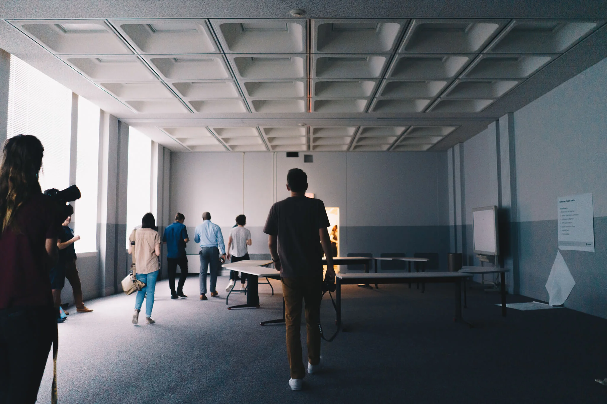 Once on the second floor, we walked past ornate water fountains to what was originally a theater, both for performances and motion pictures at different stages of life. A now walled-in stage, back room mechanicals, rectangular openings for projectors, and striking ceiling all point back to this original purpose: