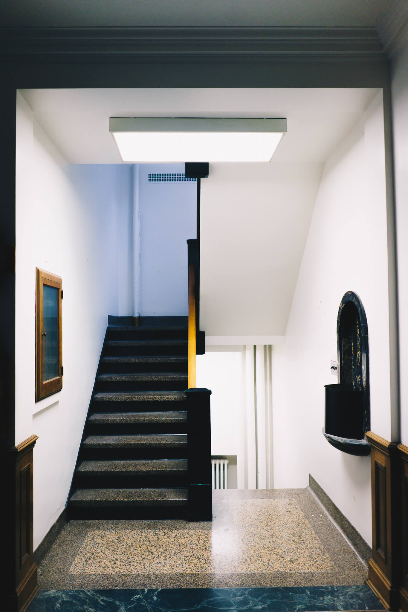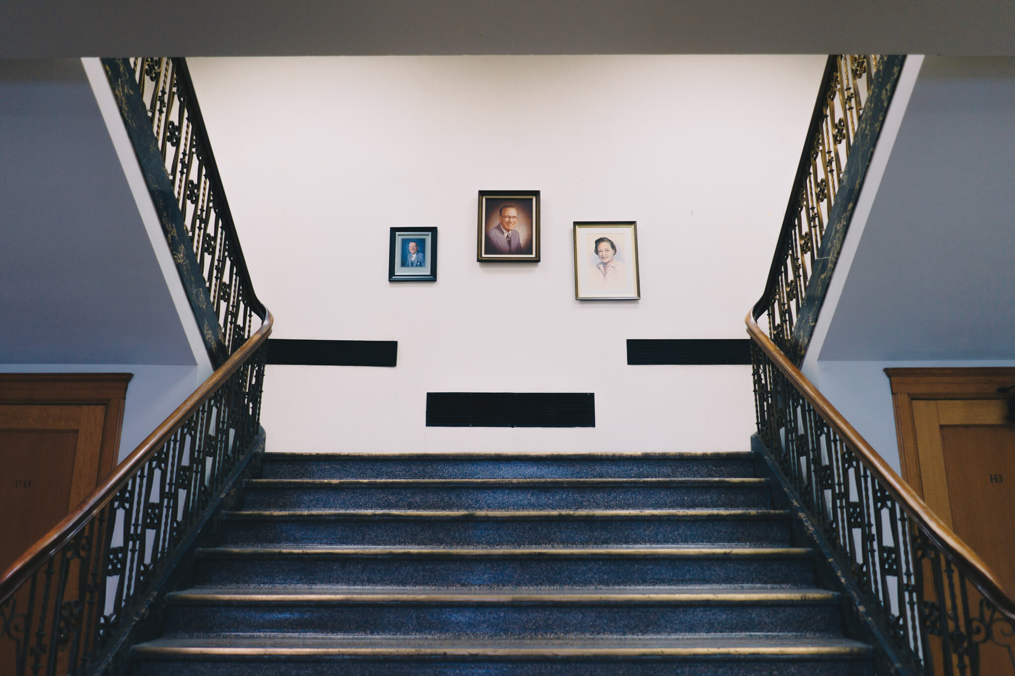 Finally, the third floor. Home to executive office suites including that of Vincent Bendix, the corporation's namesake founder. Art Deco influences from the entryway continue to pop up on the original elevator doors, and old wallpaper illustrated with a lavish "B" occasionally emerges from behind a coat of white paint.
