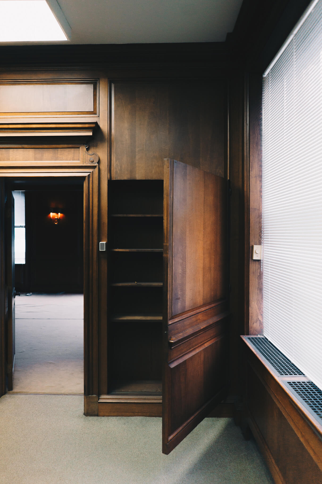 Unfortunately we cannot confirm any hidden passageways or stashes of cash, but we did find a well disguised cabinet: