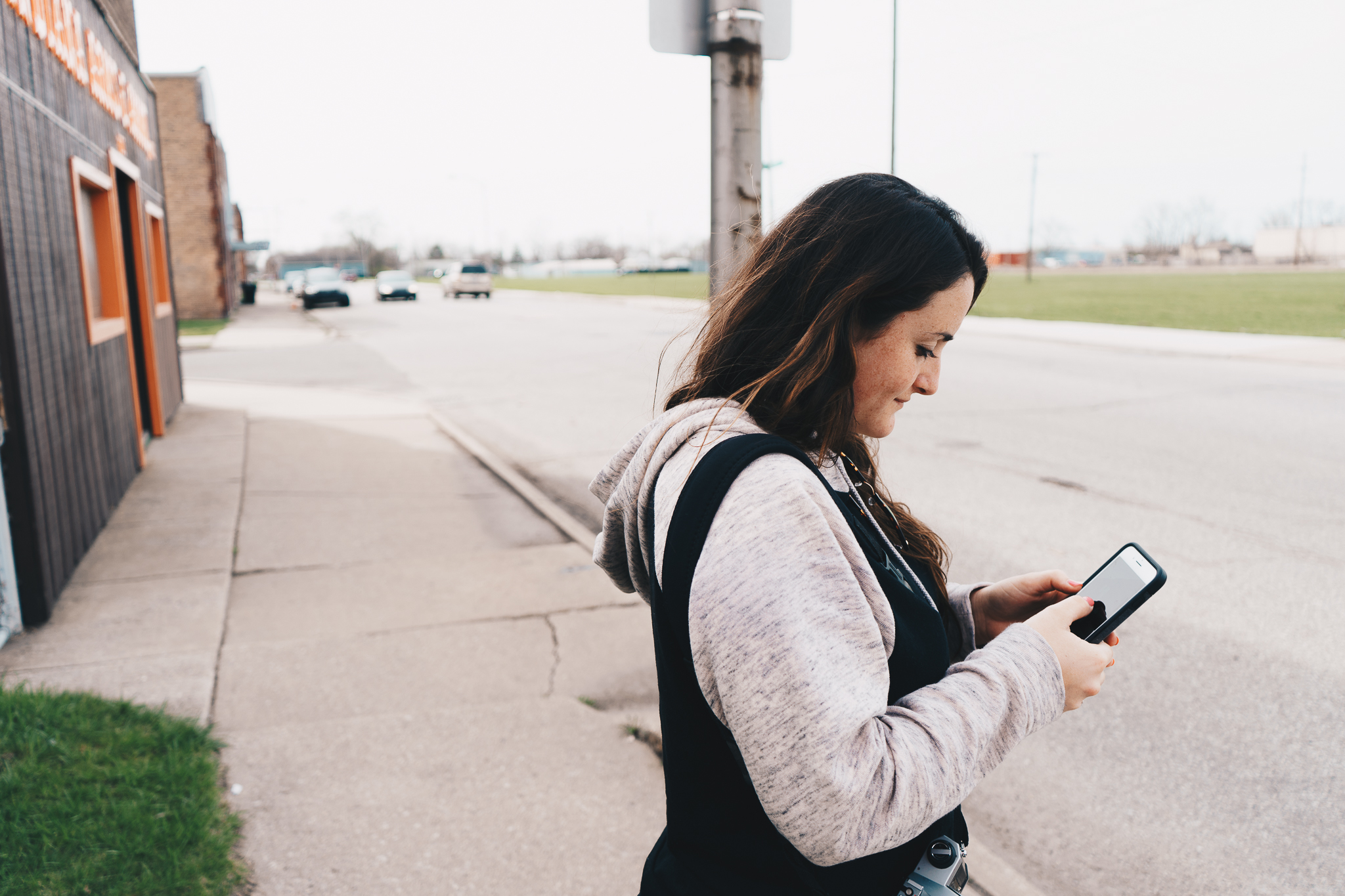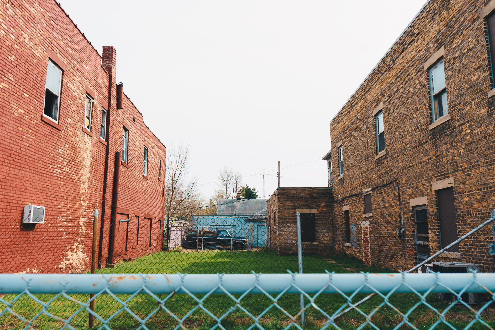 At 4:00 PM on Wednesday April 12th I met fellow photographer Mary McGraw for a stroll down Indiana Avenue on the South edge of downtown South Bend. Indiana Avenue, populated by a string of storefronts, sits in between the Rum Village neighborhood and the sprawling land formerly home to Studebaker and Oliver Plow.