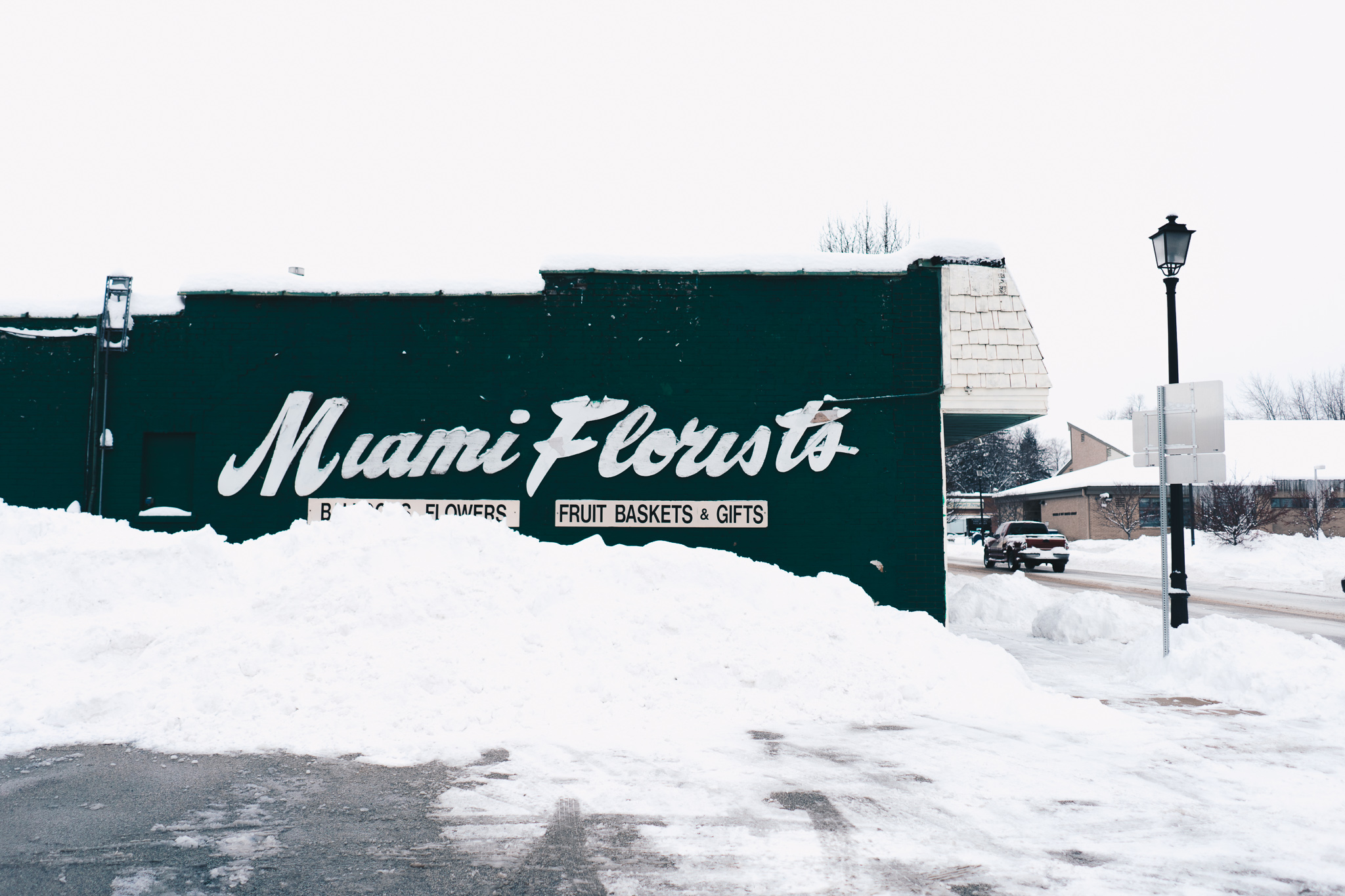 At noon on Saturday February 10th I, accompanied by my friend Josh, took to Miami Village for a frigid, snowy photo walk. Miami Village, populated by storefronts, churches, homes, and a cemetery, stretches through the South East side of South Bend.