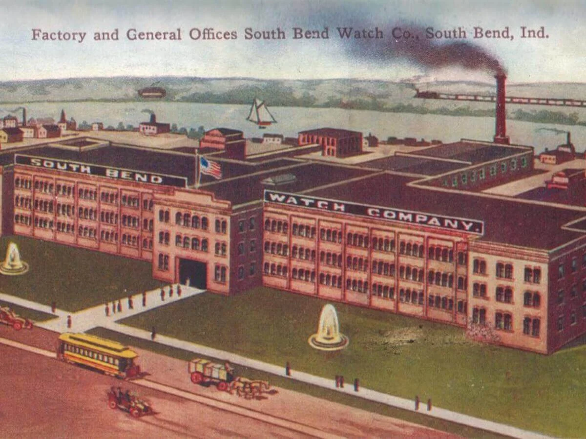 South Bend Watch Factory along Mishawaka Avenue from a 1910 Postcard.