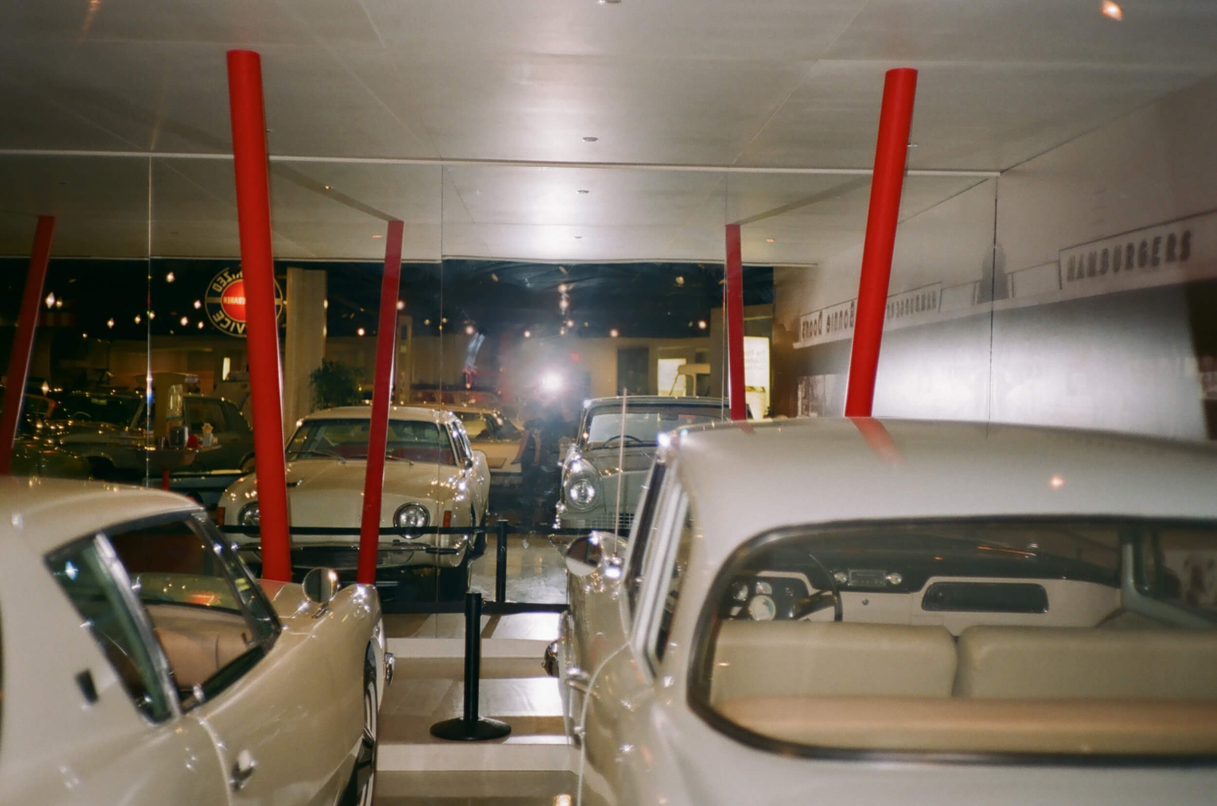The glass was cold, but I was still beginning to sweat under my coat. I couldn’t get to the coatroom because my supervisor was standing right next to it, gesticulating wildly, the contents of his drink threatening to take flight with each punctuated word. To my right I saw into the first-floor gallery, which I thought might offer a respite. I slipped through the crowd with my head down, whispering apologies even though no one needed to clear a path for me. Inside the exhibit, I took a breath. It was less crowded within, yet still I recognized colleagues milling about, looking closely at the cars on display, reading closely placards and labels, and wall displays with old photos and newspaper clippings. I almost continued further, but ahead of me I saw Martin and Pauline deep in conversation, and I spun around before they could catch sight of me.