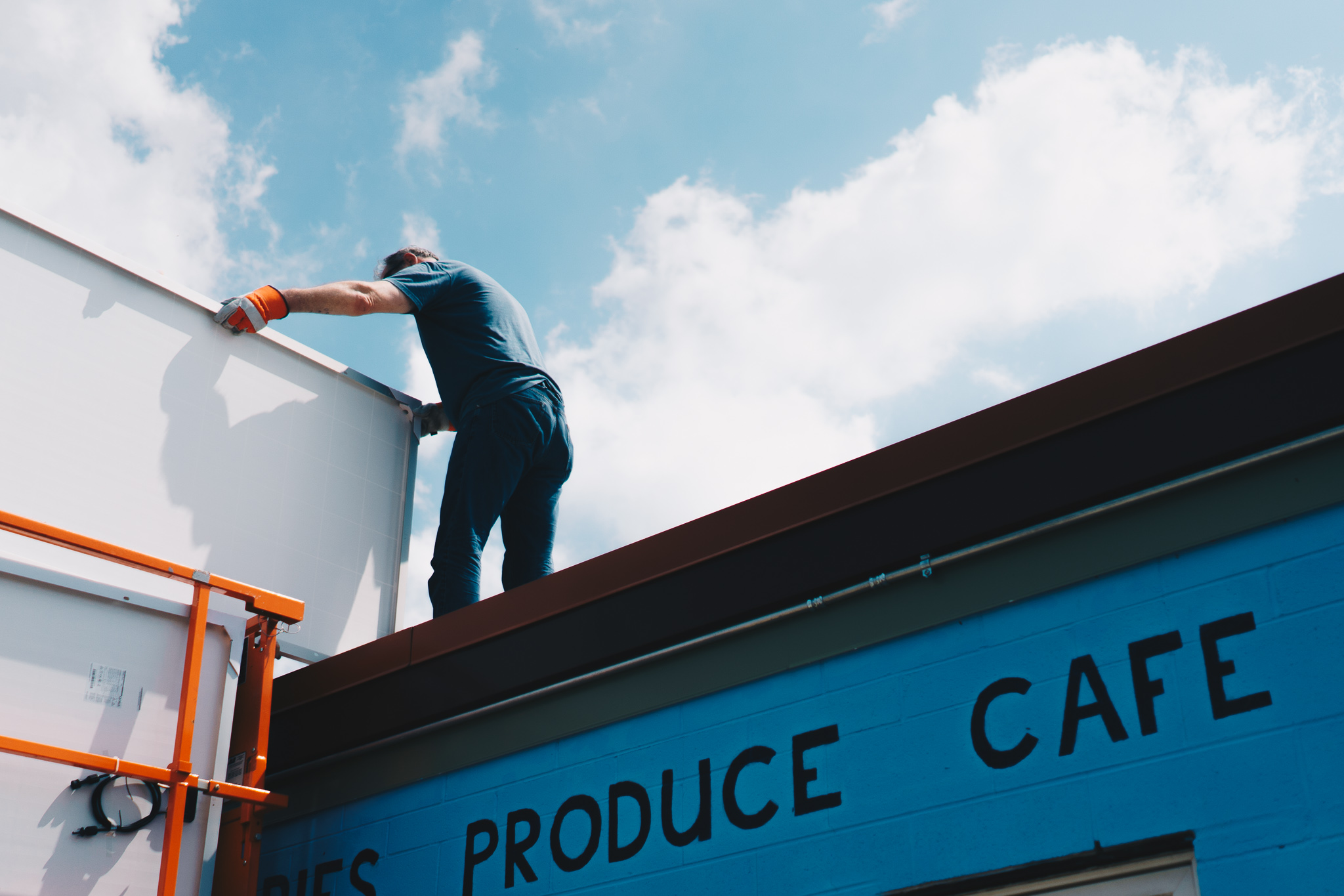 On Saturday May 26th, less than a year since the idea's conception, installation began. 12 volunteers plus 2 professionals from Yor Solar gathered in the store's parking lot to install 42 solar panels on the roof. We captured the first two hours of this long, sweaty day: